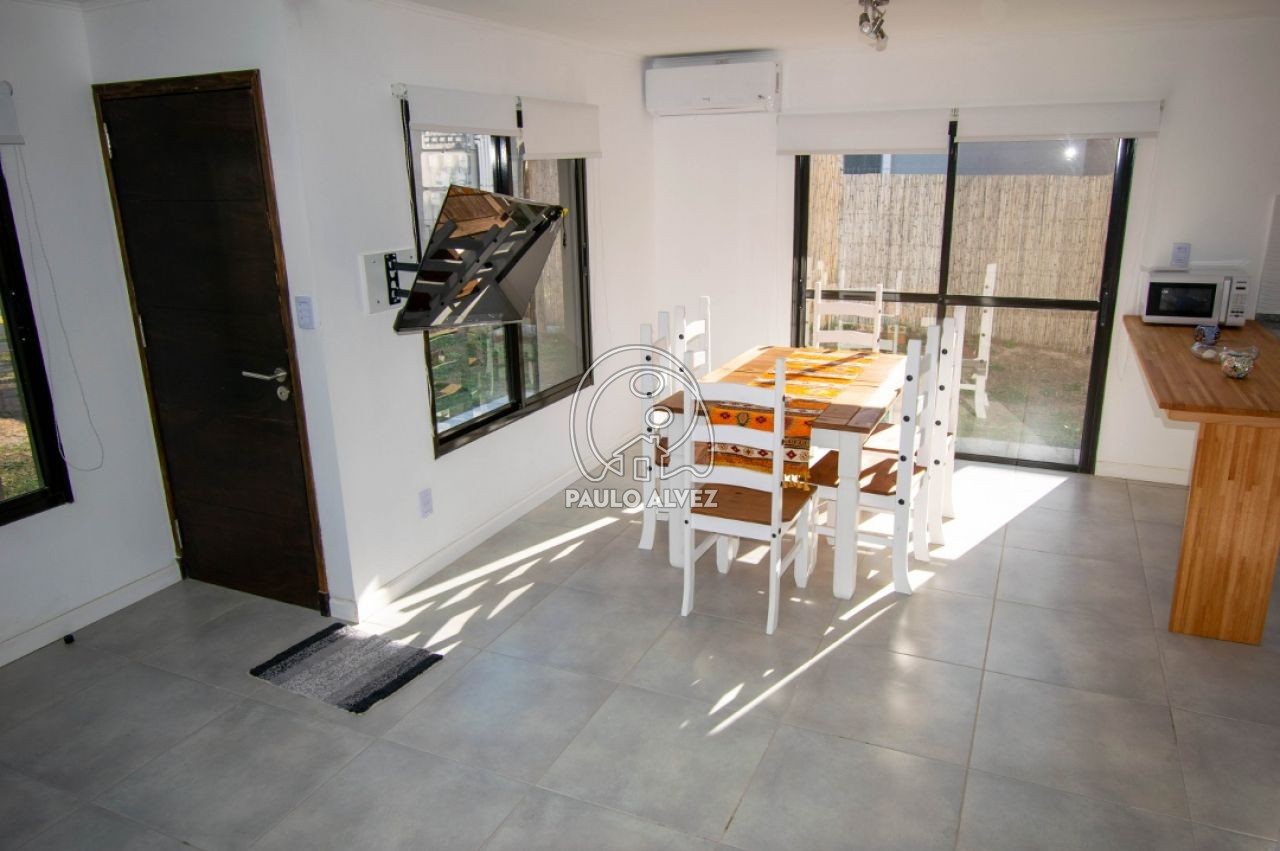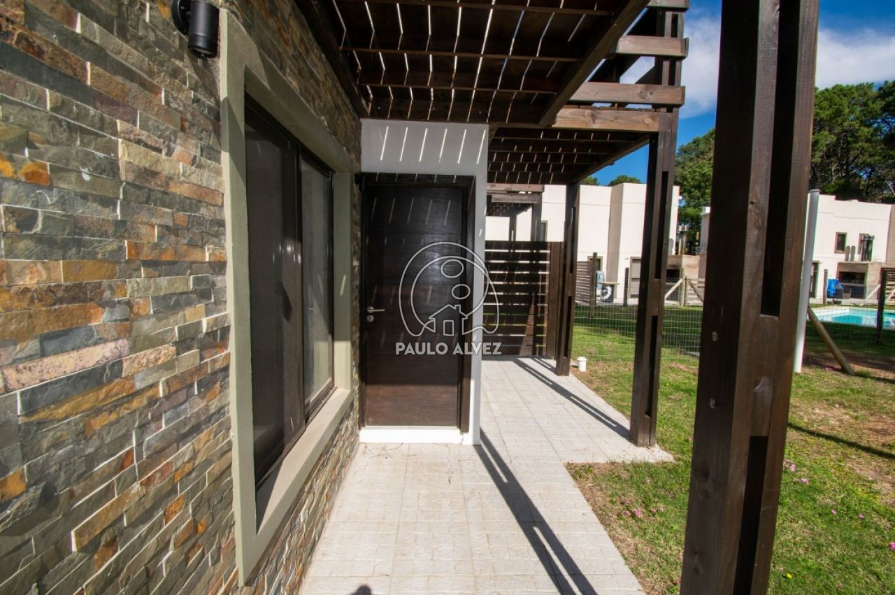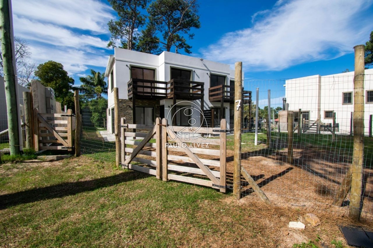 Cómoda y funcional propiedad en régimen de propiedad horizontal, ubicada en barrio Country a pocos minutos del centro de Piriápolis. Entorno agradable y tranquilo. Construcción de steel framing de 72 m², muros dobles con yeso al interior y placa rigidizadora de fenólico estructural, aberturas de aluminio y techo de isopanel. Emplazada sobre un predio de 180 m², totalmente cercado. Distribuida en dos plantas. Planta baja, amplio y luminoso living comedor, cocina semi definida por barra desayunador, con muebles bajo mesada, baño social. Planta alta, baño completo con mampara de vidrio y dos espaciosos dormitorios con balcón, uno de ellos con placard empotrado. Al fondo, jardín con parrillero y piscina compartida. Consulte para coordinar su visita.