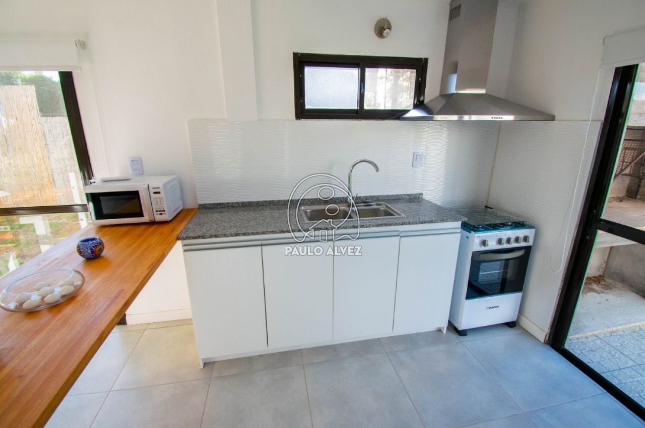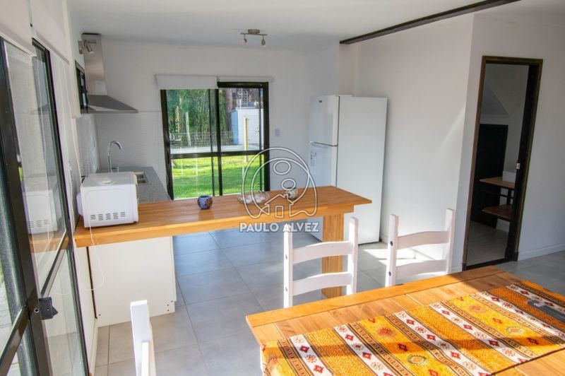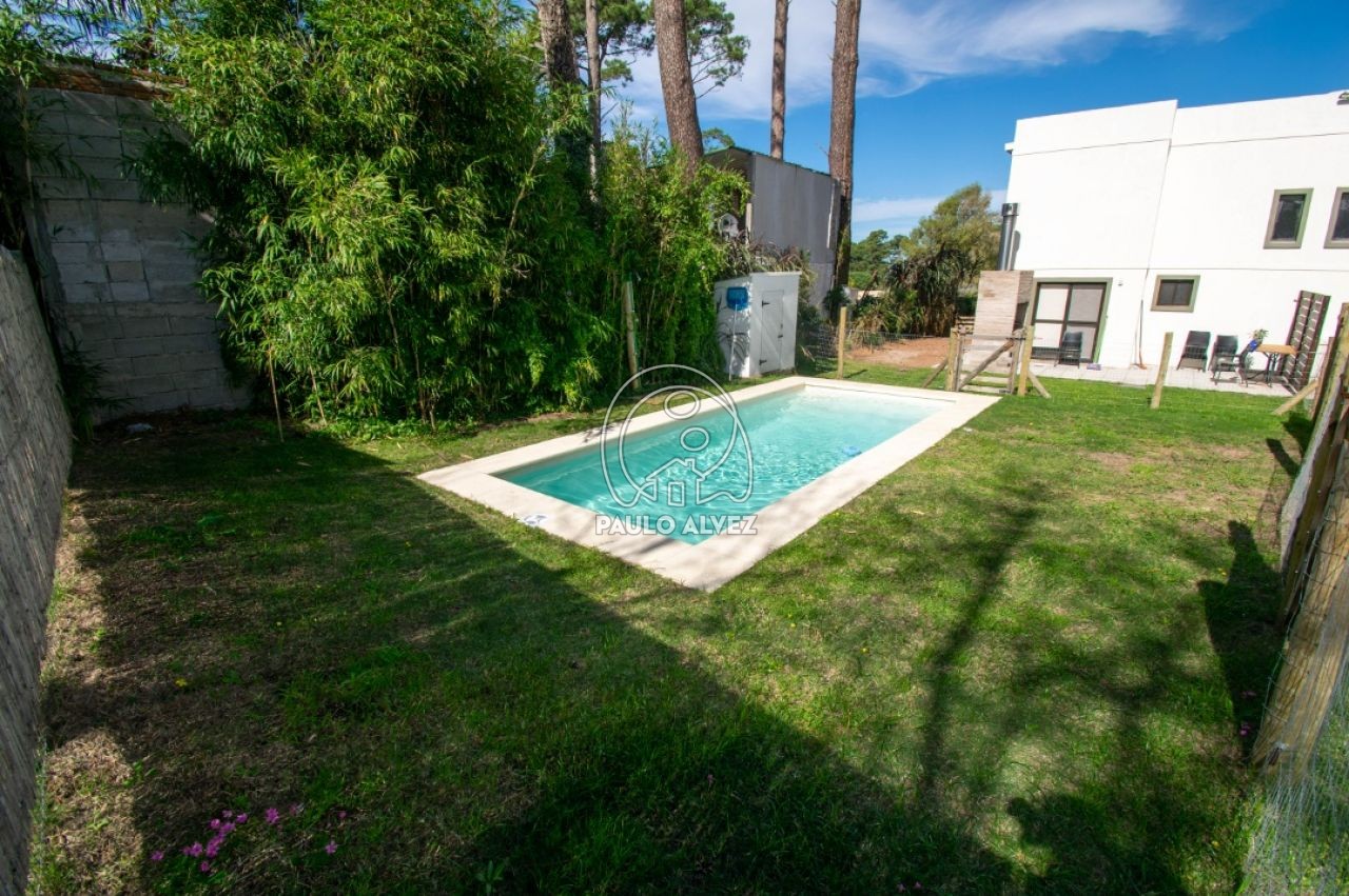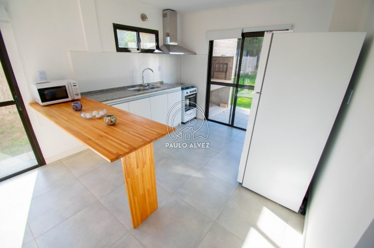Cómoda y funcional propiedad en régimen de propiedad horizontal, ubicada en barrio Country a pocos minutos del centro de Piriápolis. Entorno agradable y tranquilo. Construcción de steel framing de 72 m², muros dobles con yeso al interior y placa rigidizadora de fenólico estructural, aberturas de aluminio y techo de isopanel. Emplazada sobre un predio de 180 m², totalmente cercado. Distribuida en dos plantas. Planta baja, amplio y luminoso living comedor, cocina semi definida por barra desayunador, con muebles bajo mesada, baño social. Planta alta, baño completo con mampara de vidrio y dos espaciosos dormitorios con balcón, uno de ellos con placard empotrado. Al fondo, jardín con parrillero y piscina compartida. Consulte para coordinar su visita.