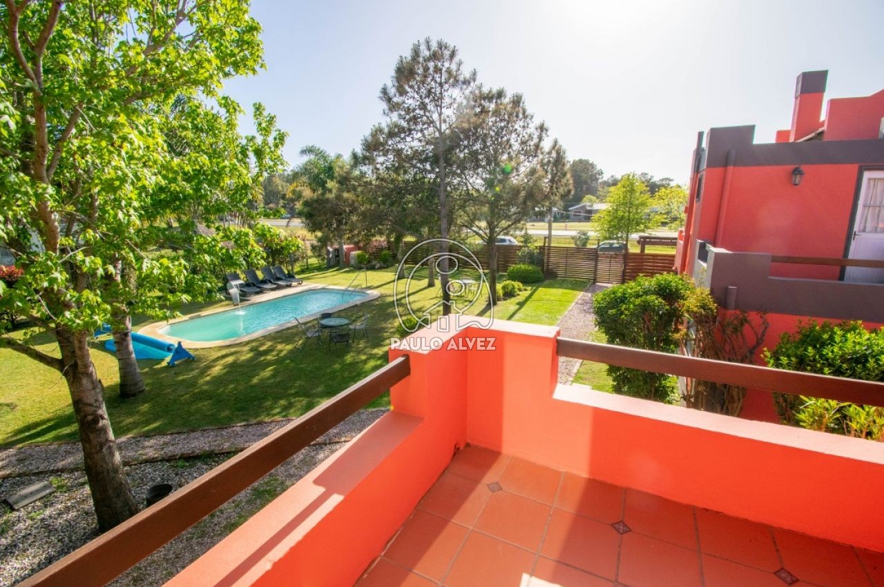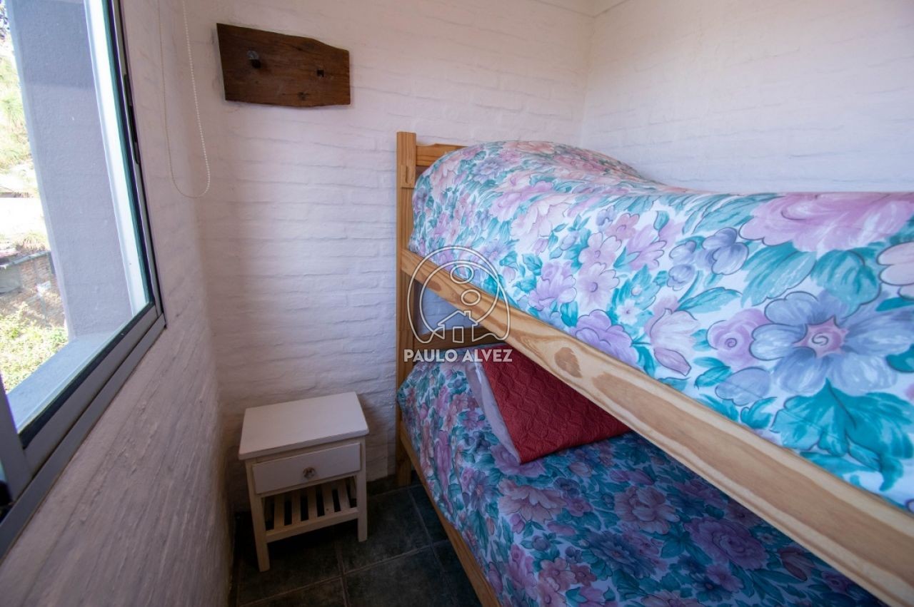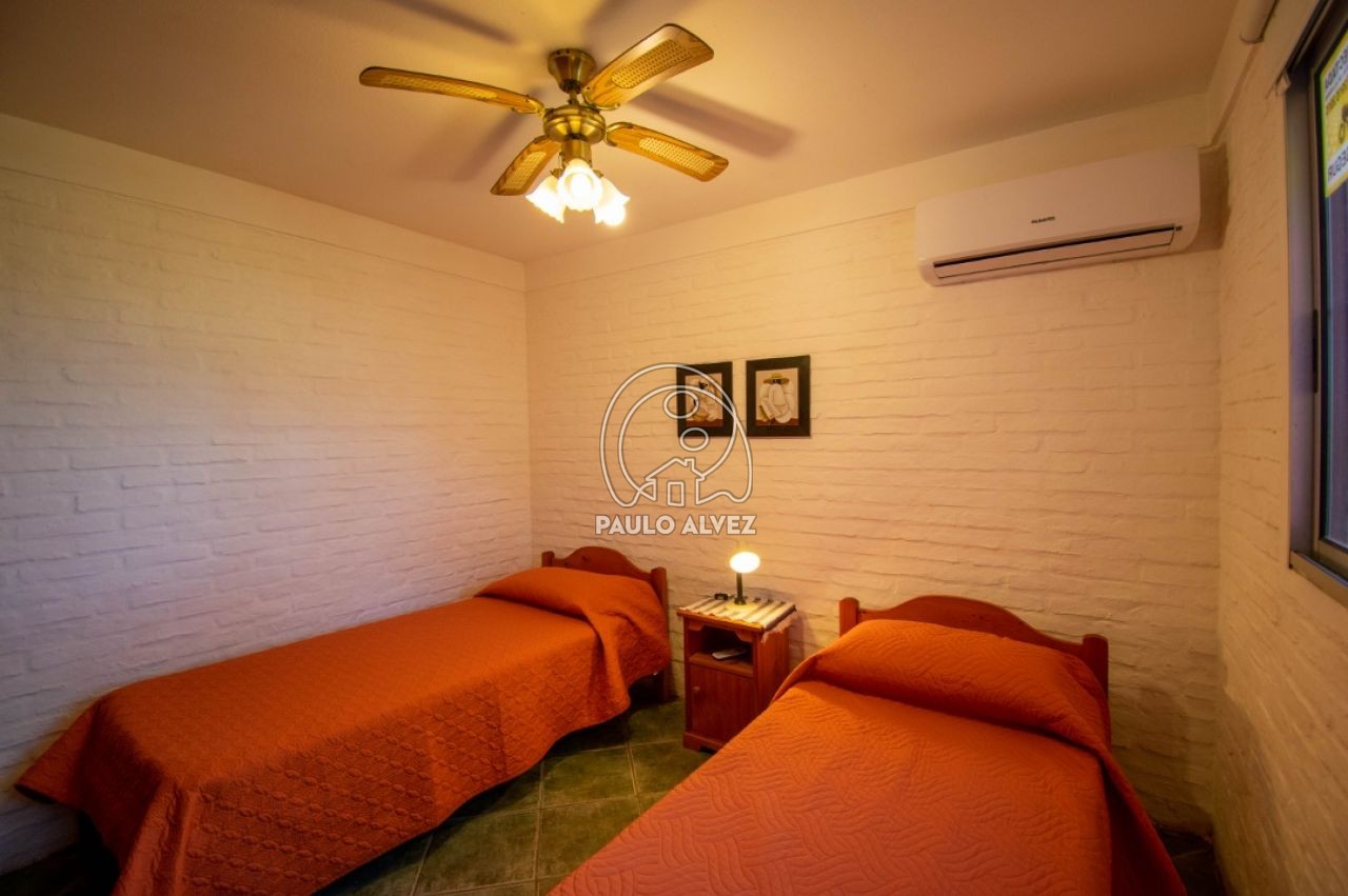 Complejo vacacional ubicado en Proa al mar, a 300 metros del mar. Casa al frente. Construcción tradicional, emplazada sobre un predio de 975 m². La misma está distribuida en dos plantas. Planta baja, living comedor con LCD, cocina semi definida por barra desayunadora, baño completo,  dormitorio con dos camas de una plaza y aire acondicionado. En planta alta, dormitorio matrimonial con aire acondicionado, tercer dormitorio con cama cucheta. Segundo baño completo. Parrillero de uso exclusivo. Gran jardín de uso común con piscina climatizada y reposeras para tomar sol. Wifi. DirecTV. Consulte por más información.