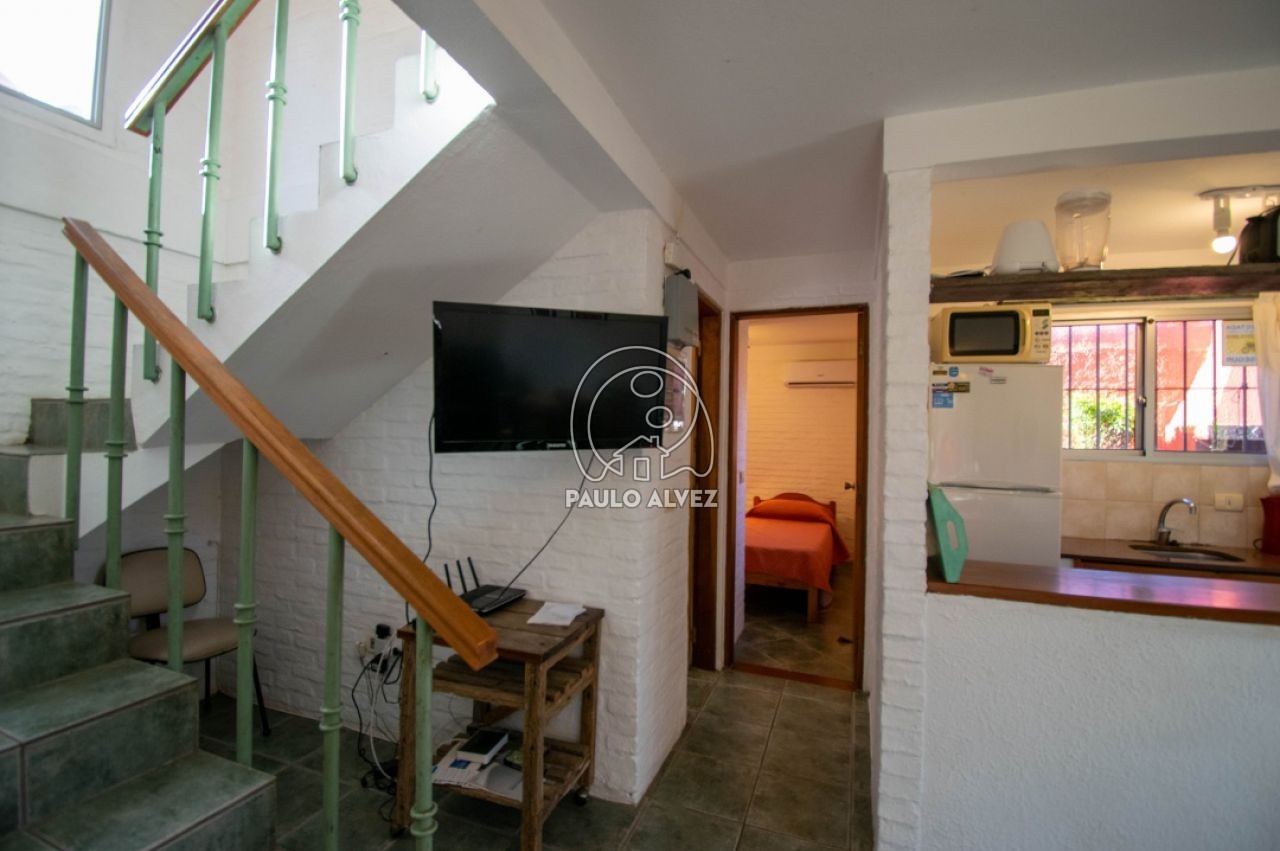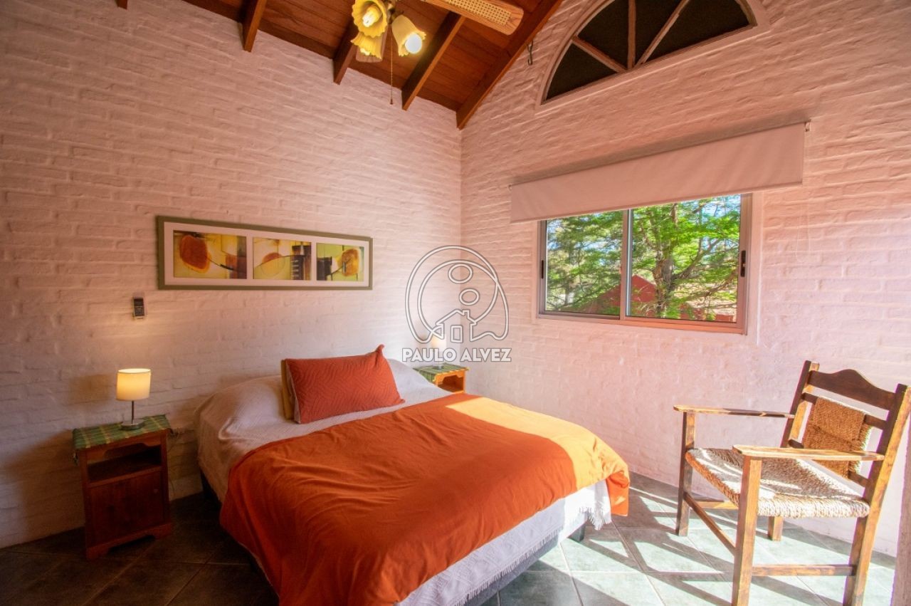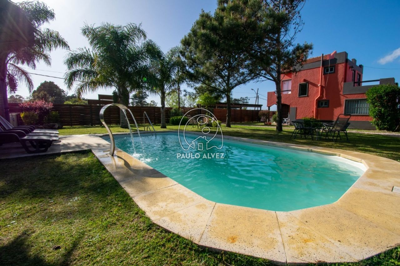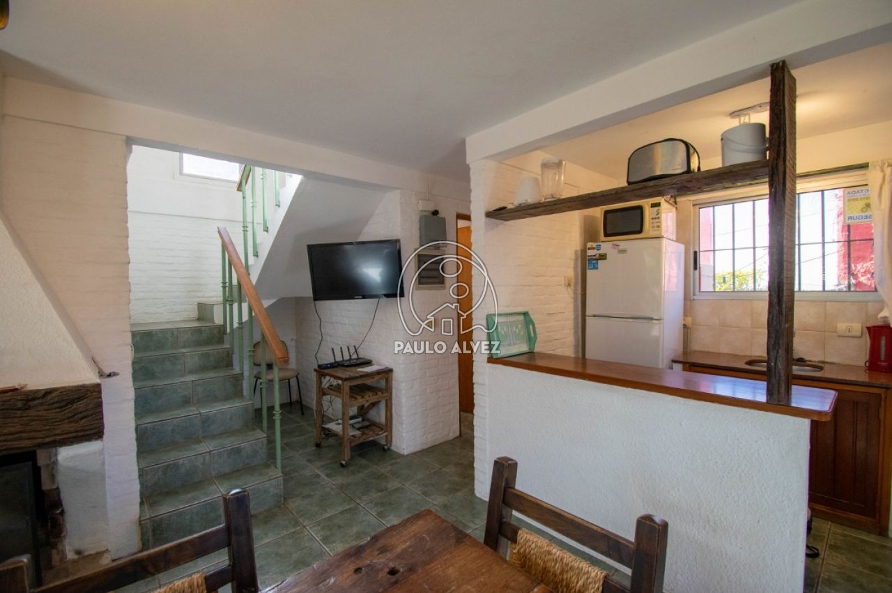 Complejo vacacional ubicado en Proa al mar, a 300 metros del mar. Casa al frente. Construcción tradicional, emplazada sobre un predio de 975 m². La misma está distribuida en dos plantas. Planta baja, living comedor con LCD, cocina semi definida por barra desayunadora, baño completo,  dormitorio con dos camas de una plaza y aire acondicionado. En planta alta, dormitorio matrimonial con aire acondicionado, tercer dormitorio con cama cucheta. Segundo baño completo. Parrillero de uso exclusivo. Gran jardín de uso común con piscina climatizada y reposeras para tomar sol. Wifi. DirecTV. Consulte por más información.